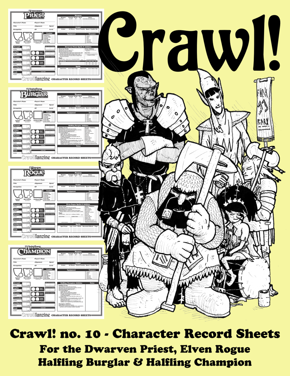 Official Character Record Sheets for the character classes found in Crawl! fanzine no. 10!